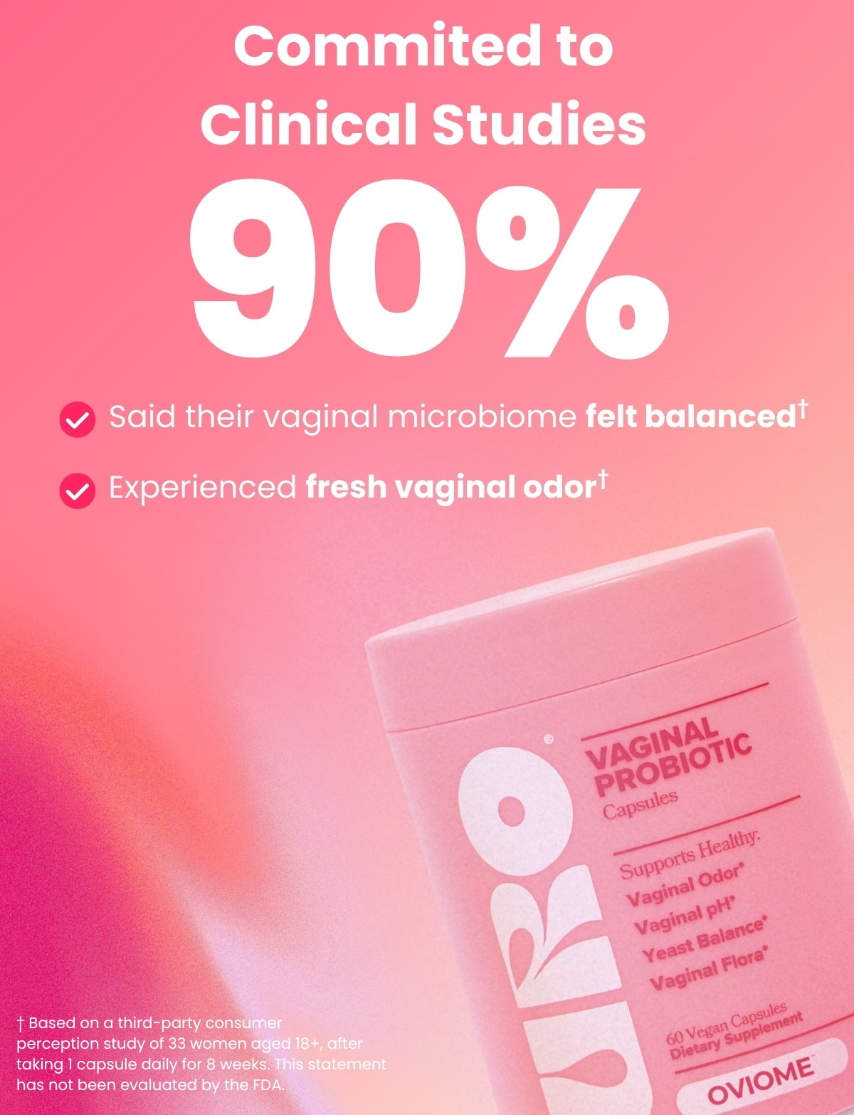 Everyone’s body is different, but research on probiotics suggests that some people may notice changes within a few weeks, with the best results often coming from daily use over at least 8 weeks. Because microbiome support is gradual, OVIOME is designed as a consistent part of your routine rather than a one time quick fix. Individual results will vary.